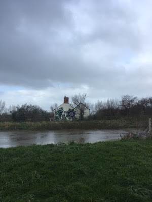 Giant flower mural on the side of a house at Stathe Farm, to the south east of Burrowbridge
